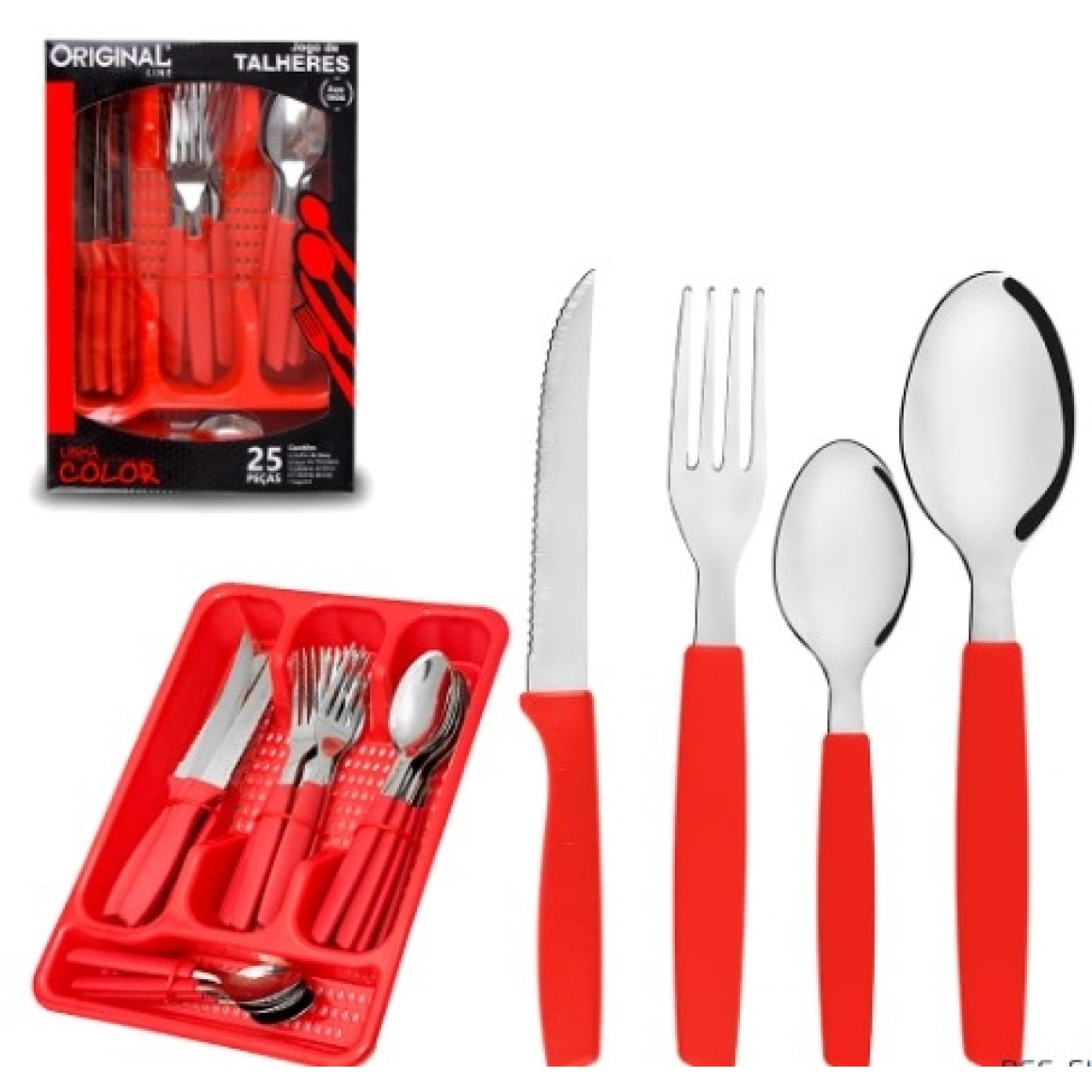 Jogo De Talheres Color 25 Peças Com Porta Talheres - Vermelho