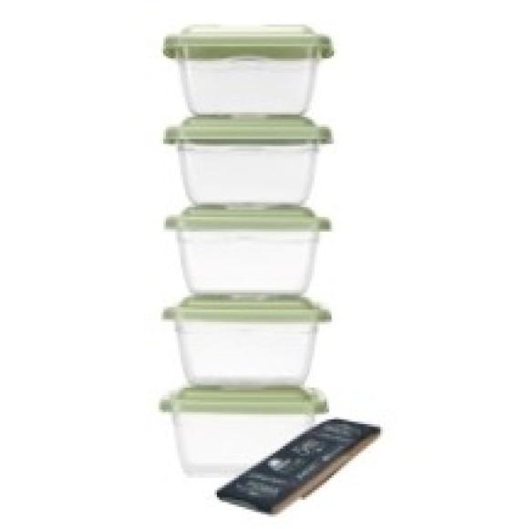 Conjunto 5 Potes Quadrado 240 ML Transparente Com Tampa Colorida Plastificado