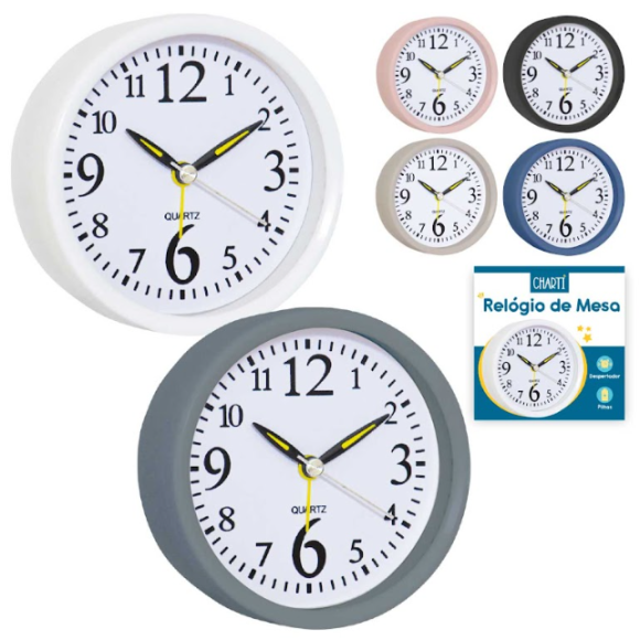 Relogio Despertador De Mesa Sortido 9,6 Cm Plastico