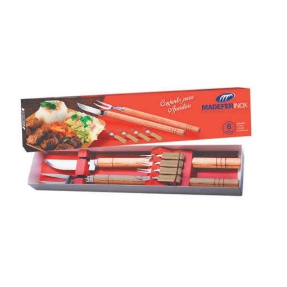 Conjunto Aperitivo 6 Peças 1 Faca,1 Garfo E 4 Garfinhos